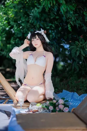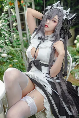 Coser小姐姐星之遲遲25年3月計劃F碧藍航線天城主題性感低胸服飾配黑絲吊襪秀美腿誘惑寫...